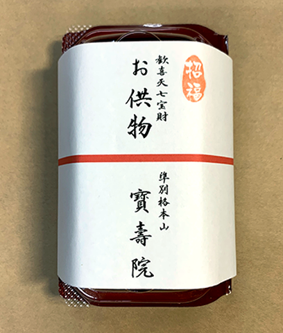 供物「福徳増長・商売繁盛」の仏様、歓喜天尊にお供えする、寳壽院特製の巾着型お団(饅頭)を参拝記念としてお持ち帰りいただきます。